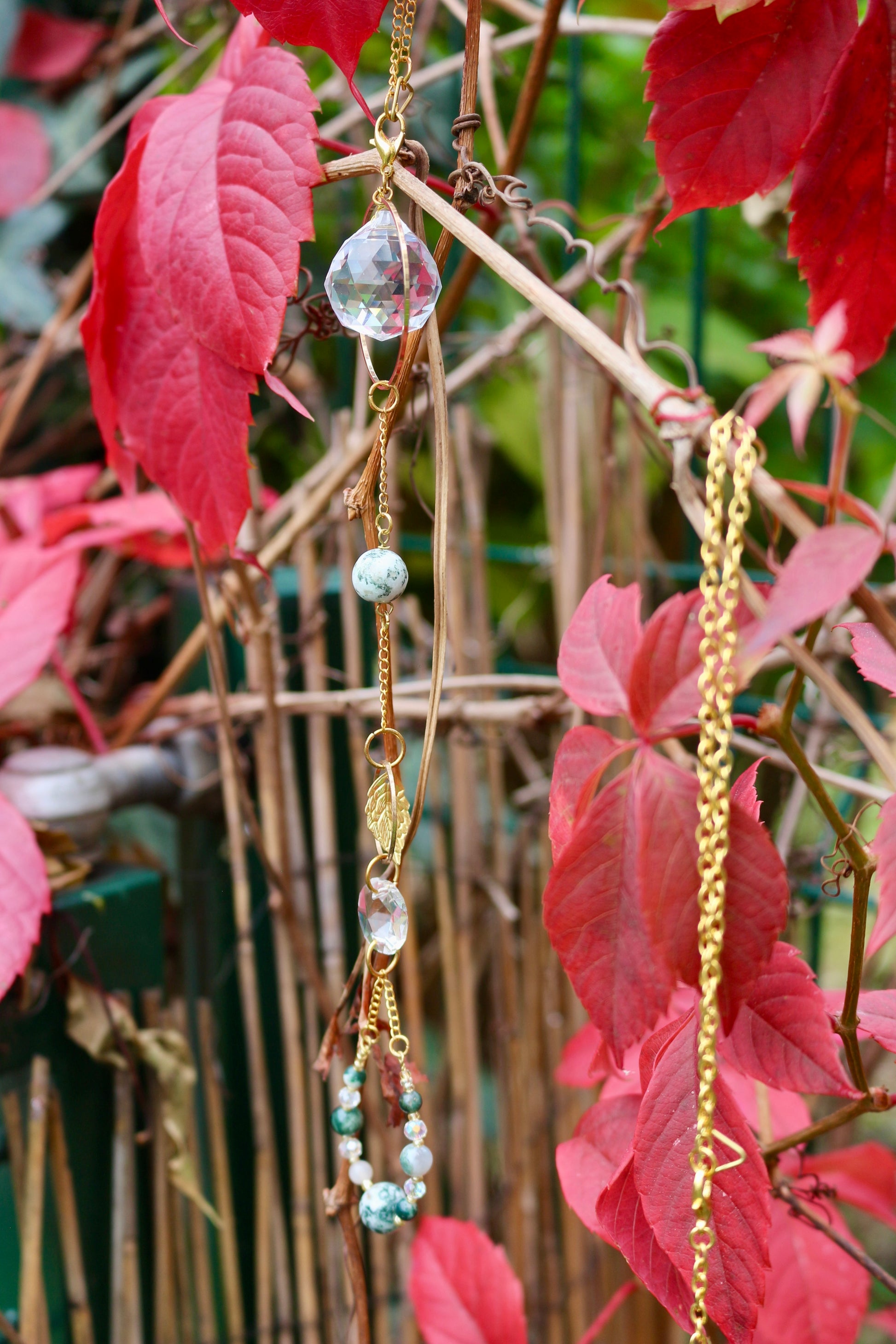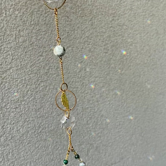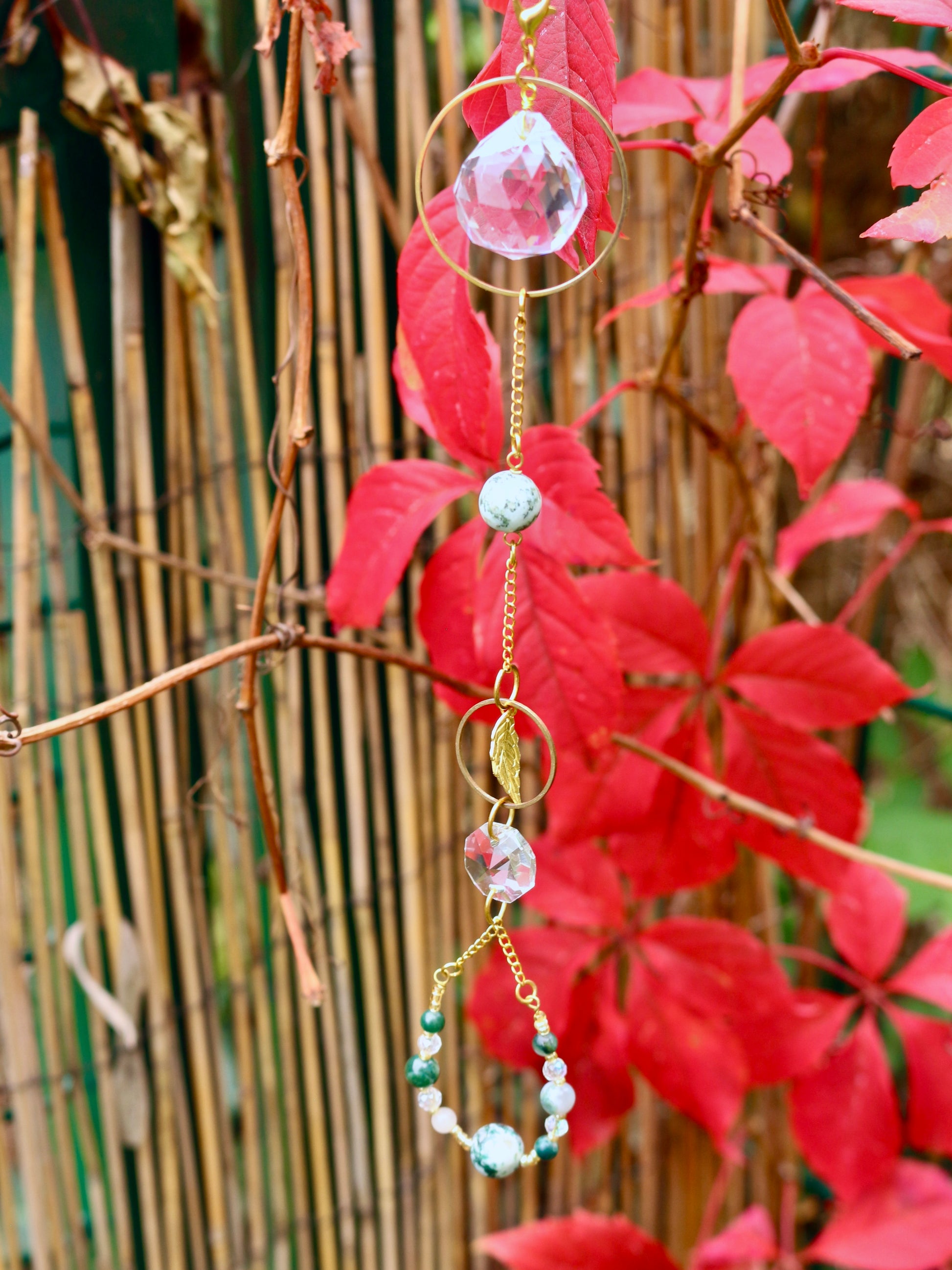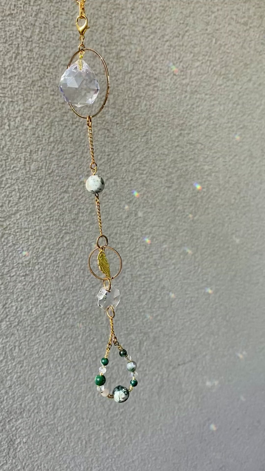 Laissez la lumière danser dans votre intérieur avec Serenna, un suncatcher en pierre naturelle inspiré par la sérénité et la beauté du changement.